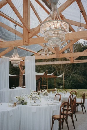 Entourée de pins, baignée par la lumière landaise, notre salle de réception s’intègre parfaitement dans son environnement naturel.